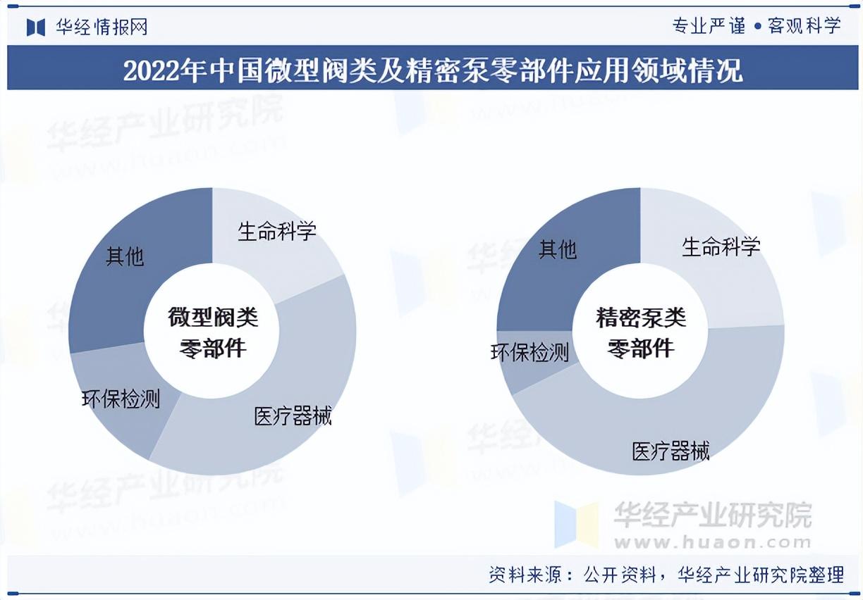 医疗器械是微型阀类零部件及微型流体精密控制精密泵类零部件最主要的应用领域,2022年微型阀类零部件在医疗器械领域的应用占据中国微型阀类零部件市场的38.9%。此外,生命科学领域市场占整体市场的18.4%。2022年精密泵类零部件在医疗器械领域的应用占据中国精密泵类零部件市场的43.4%。此外,生命科学领域微流体控制零部件市场占整体市场的24.2%。