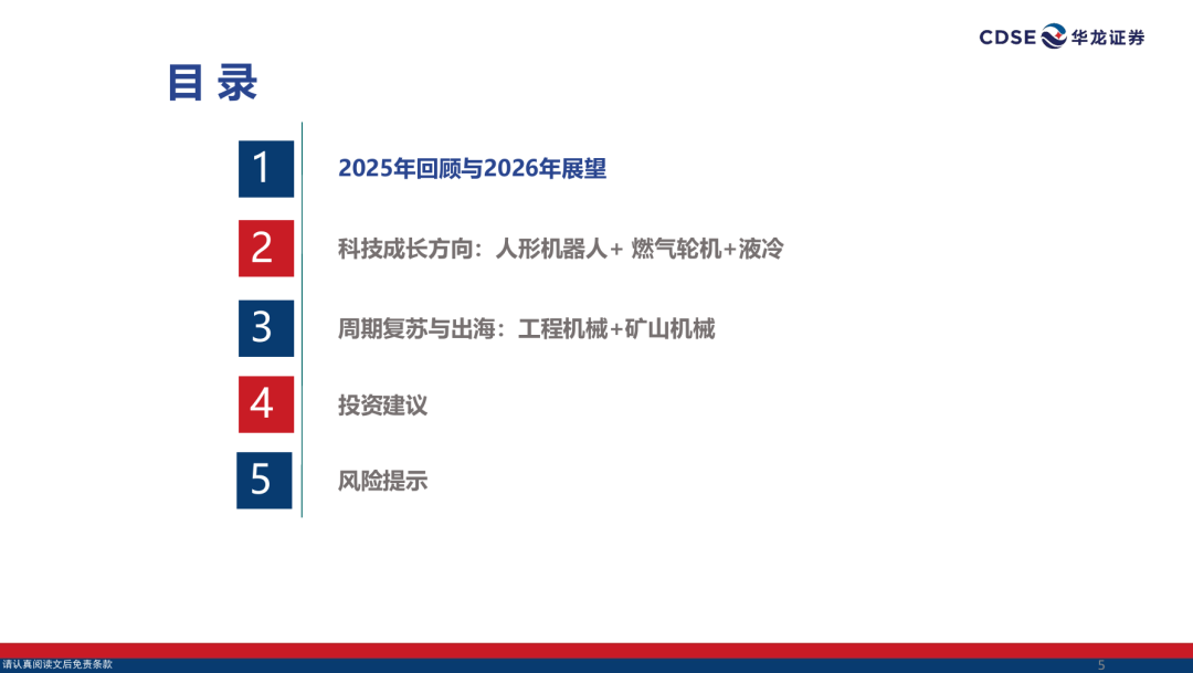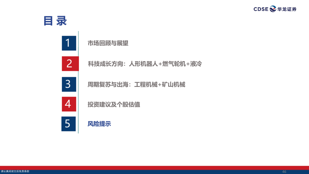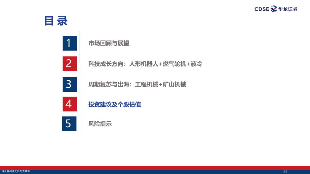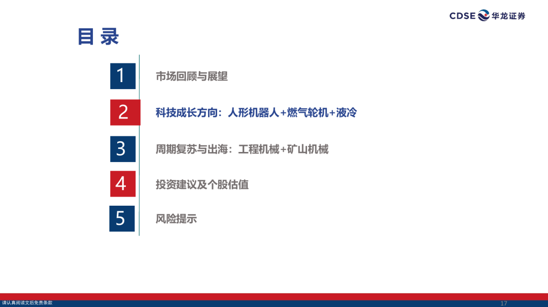 维持行业“推荐”评级,进攻方向:人形机器人(左侧布局)、AI基建(燃气轮机+液冷);稳健方向:工程机械、矿山机械,低估值,业绩增长可见。