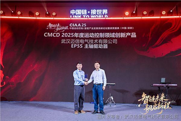 点击次数: 12月18日,2025中国运动控制/直驱产业发展高峰论坛暨颁奖盛典于深圳隆重举行,武汉迈信电气技术有限公司凭借自主研发的EP5S主轴驱动器荣获“CMCD2025年度运动控制领域创新产品”大奖,并同时被评为“CMCD2025年度运动控制领域用户满意品牌”。