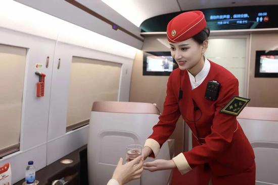 “冰雪旅游列车”驰向雪原,载满欢声笑语;车厢里,一杯暖茶、一句问候、一个微笑,都是铁路人无声的温暖传递。