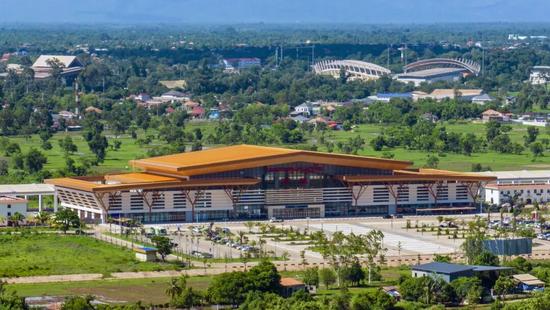 中老铁路万象站候车大厅装饰装修融入占巴花、中国结等元素
