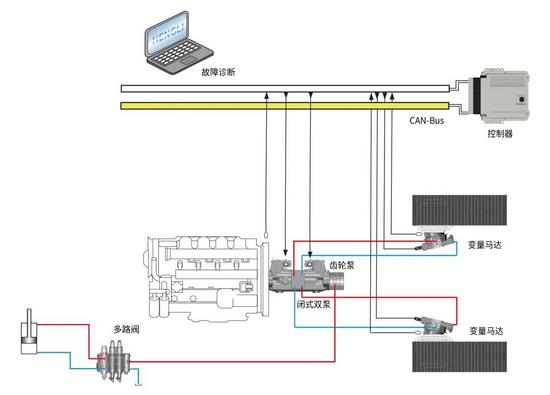 针对不同规格的车辆需求,还可选用V40E/V40G系列高压闭式泵与M60V(E)斜轴马达组合而成的双泵双马达闭式行走系统。