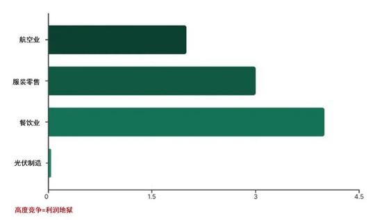 餐饮业平均净利润率3%-5%,服装零售业是2%-4%,航空业是1%-3%,光伏锂电的长期净利润率几乎为零,这些都是完全竞争的行业。